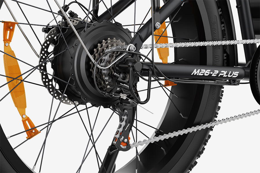 The all-terrain fat tires deliver exceptional grip and outstanding shock absorption. Coupled with their puncture-resistant design, they ensure a smooth and secure ride for your journey—whether you're navigating city streets, riding across sandy beaches, or traversing snowy terrain.