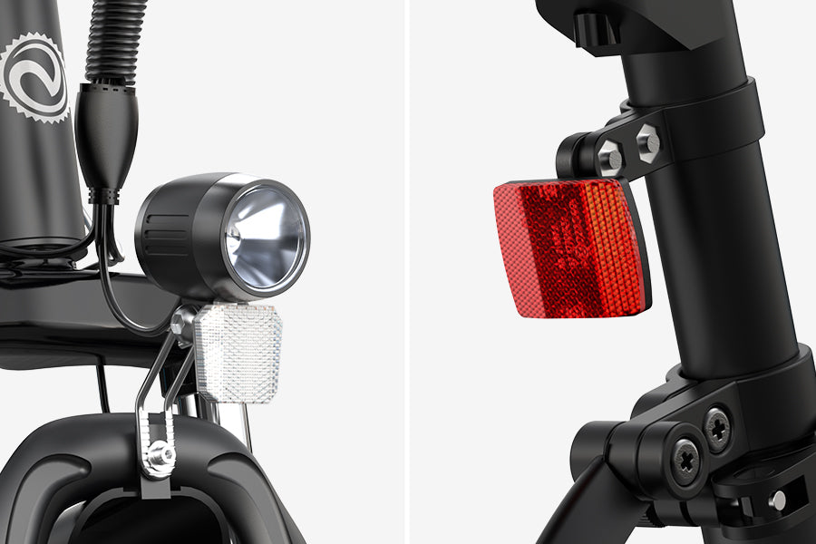 Equipped with a bright front headlight and a rear light for all-around safety. The headlight clearly illuminates your path after dark, while both lights work in unison to ensure you are highly visible to others, providing double protection for a secure ride in low-light conditions.