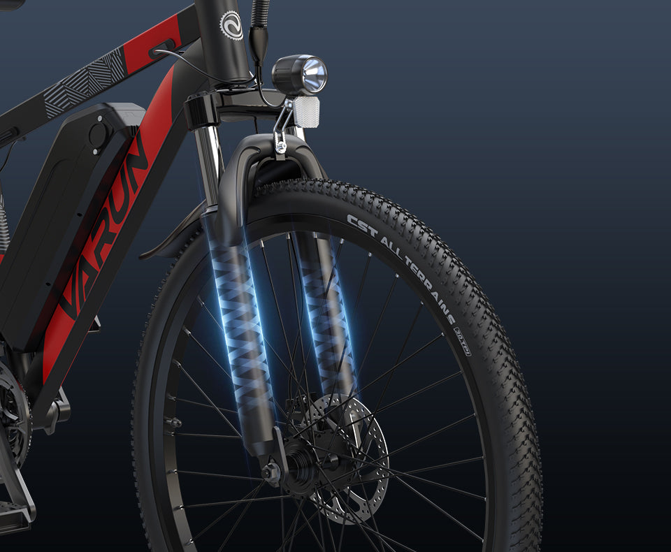 Tame the rough stuff with confidence. Our advanced front suspension fork absorbs bumps, cracks, and potholes, transforming rough terrain into a smooth, stable ride.