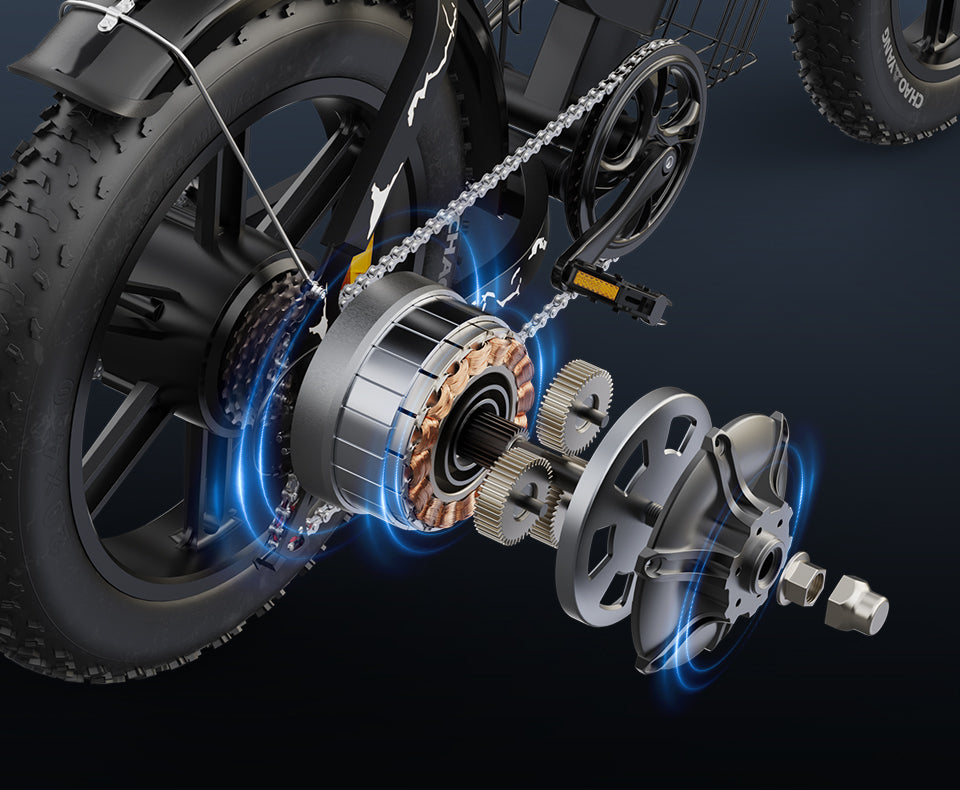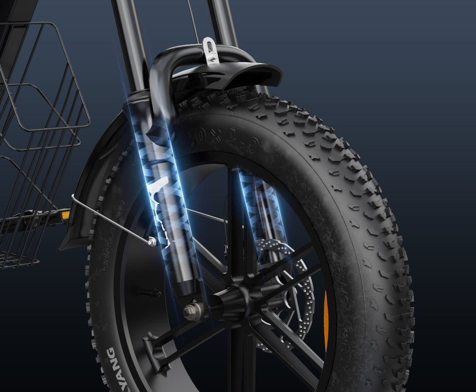 Built to endure, the all-terrain fat tires combine a rugged, wear-resistant construction with a puncture-resistant design. This ensures a smooth and secure ride across demanding surfaces—from abrasive city streets to rough trails—guaranteeing long-lasting performance.