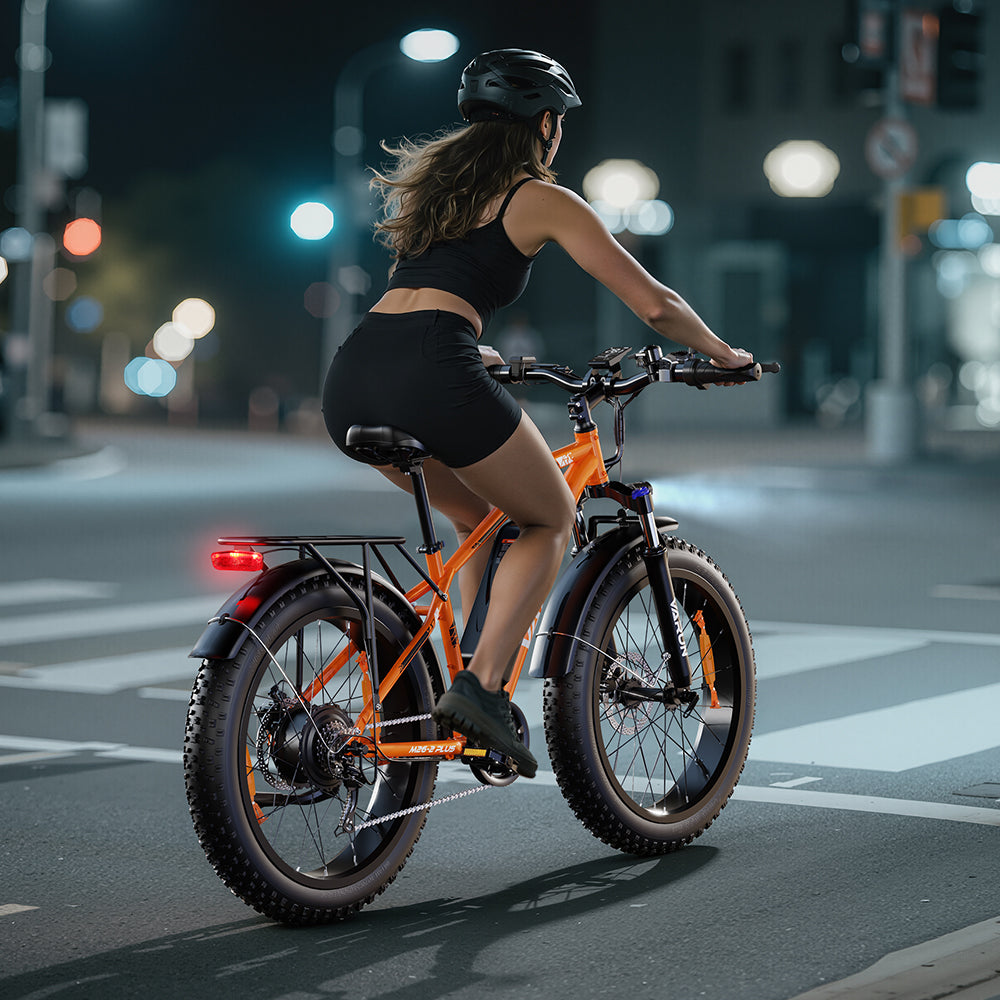The all-terrain fat tires deliver exceptional grip and outstanding shock absorption. Coupled with their puncture-resistant design, they ensure a smooth and secure ride for your journey—whether you're navigating city streets, riding across sandy beaches, or traversing snowy terrain.